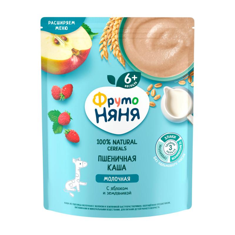 Каша пшеничная ФрутоНяня молочная с яблоком и земляникой 6м+ 200гр