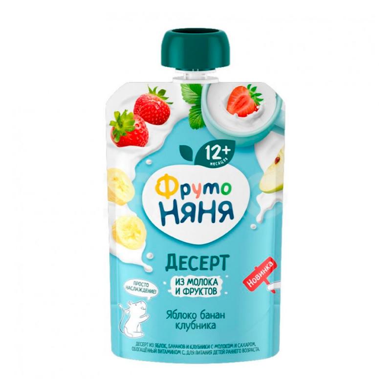 Десерт ФрутоНяня яблоко банан клубника молоко 12м+ 90гр
