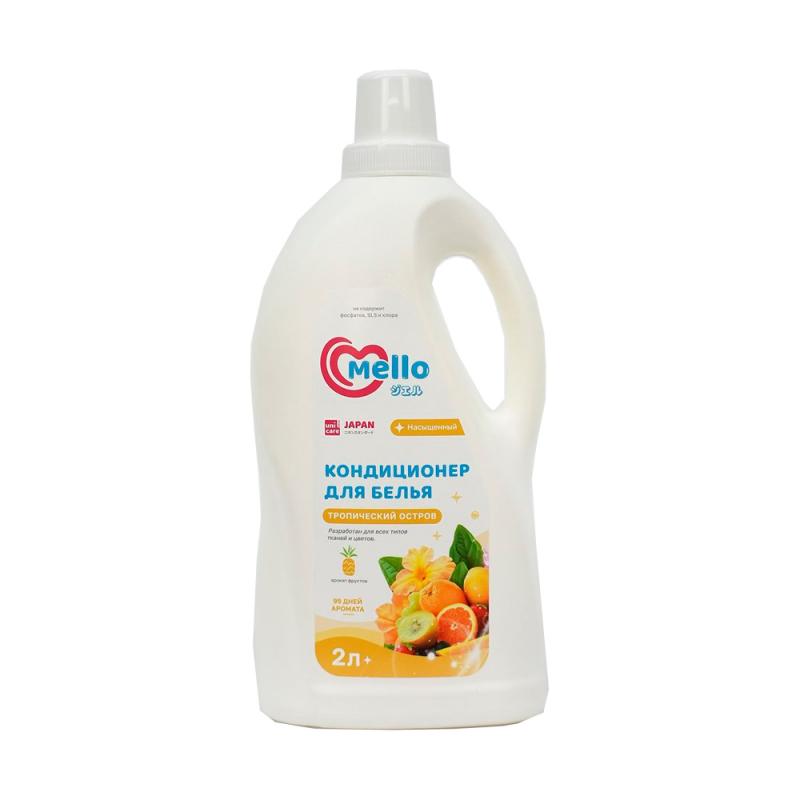 Кондиционер для белья Mello "тропический остров" 2литра. Концентрированный ополаскиватель для белья с освежающим фруктовым ароматом. Подходит для всех видов тканей, придаёт белью мягкость и оставляет стойкий приятный запах. Обеспечивает антистатический эффект и делает глажение проще. Идеален для регулярного использования, не оставляет следов и разводов. Экологичен и биоразлагаем.
