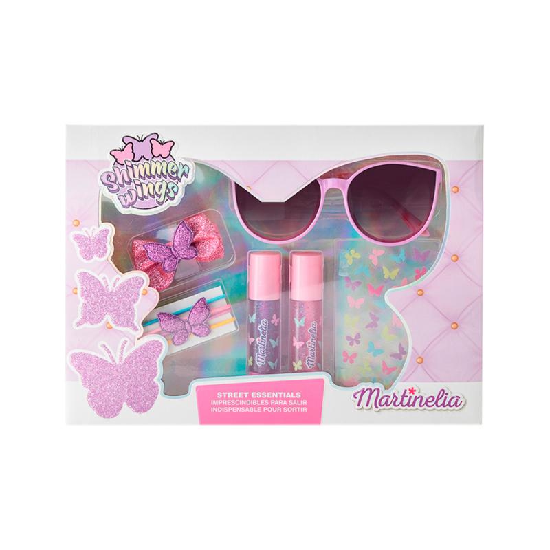 Этот набор включает в себя 4 резинки для волос, 1 заколку для волос, 2 блеска для губ, солнцезащитные очки и наклейки.