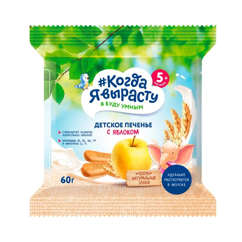 Печенье детское Когда я вырасту с яблоком с витаминами и минералами 5м+ 60 гр