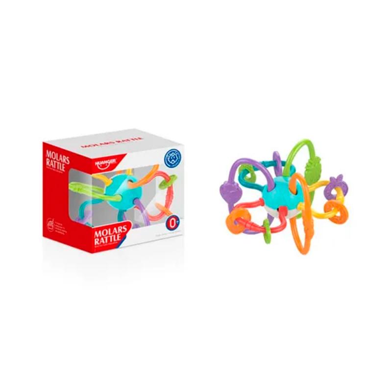 Прорезыватель-погремушка обучает детей сенсорному восприятию, предназначен для массажа десен, зубок и языка малыша.
