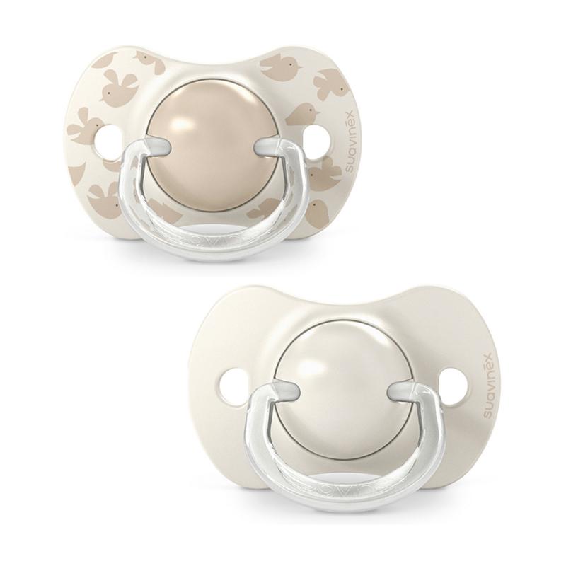 Пустышка Suavinex Birdies бежевая 6-18м 2шт