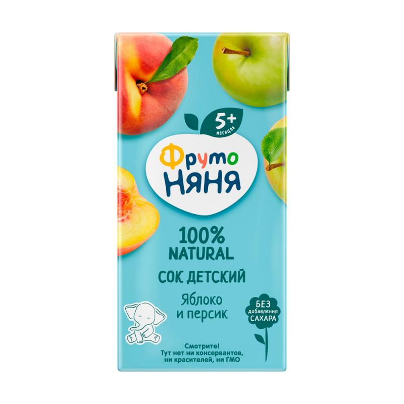 ФрутоНяня сок яблочно-персиковый для питания детей раннего возраста. Восстановленный.
