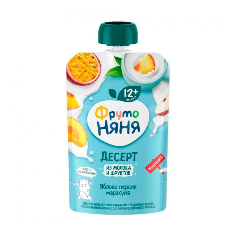 Десерт ФрутоНяня яблоко персик маракуйя молоко 12м+