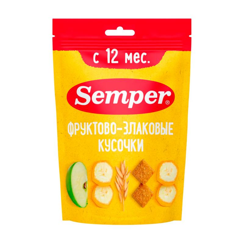 Semper — это больше, чем детское питание – это по-настоящему вкусная еда, которая помогает вашему малышу расти здоровым и с удовольствием знакомиться с миром. Продукт представляет собой индивидуально упакованные кусочки – можно съесть все сразу, а можно и разделить на несколько раз. Каждый кусочек содержит около 30% цельных злаков, которые обогащают рацион малыша ценными пищевыми волокнами и помогают ему оставаться сытым на протяжении долгого времени. Натуральные фрукты — сочное яблоко и спелый банан — придают кусочкам нежный сладковатый вкус без добавления сахара, который непременно понравится вашему ребёнку. Благодаря специальной технологии приготовления, фруктово-злаковые кусочки Semper обладают мягкой и нежной текстурой, что особенно важно для малышей раннего возраста. Бережное запекание при низких температурах позволяет сохранить витамины, природную пользу и вкус натуральных фруктов.