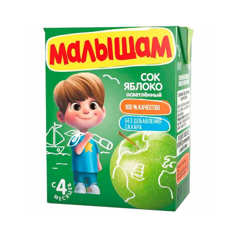 Сок Малышам осветленный яблочный 4м+ 200мл