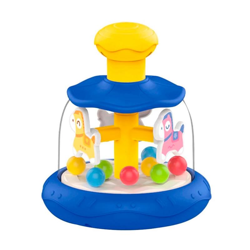 При нажатии на рукоять внутри вращаются фигурки и подпрыгивают разноцветные шарики.