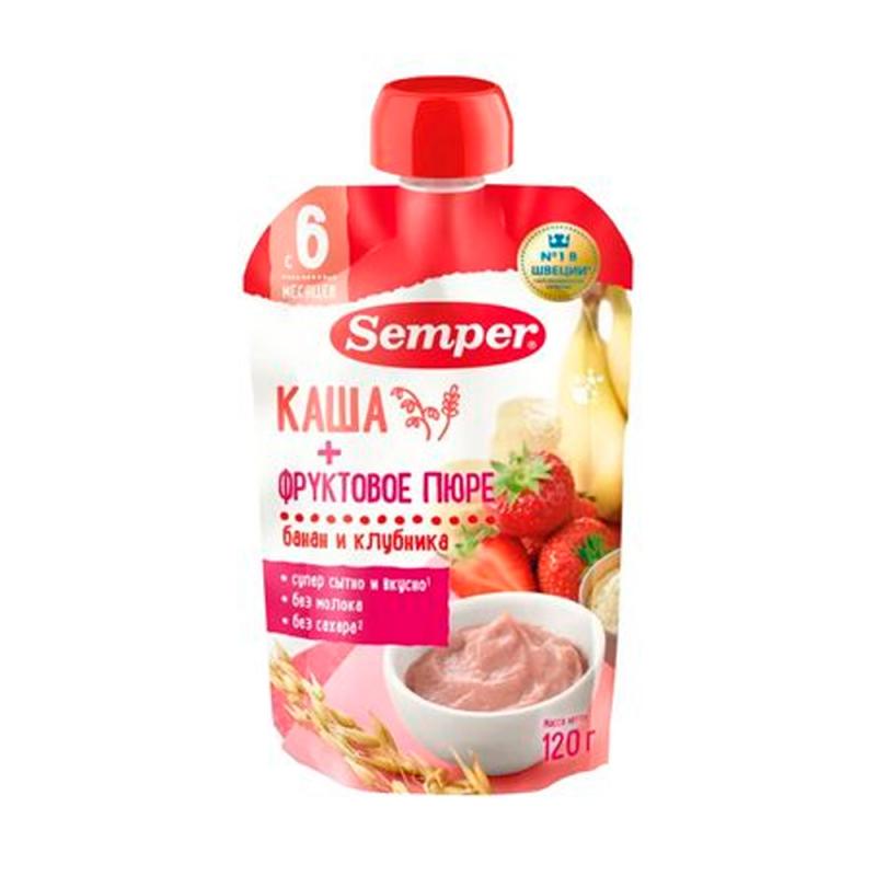 Пюре Semper фруктово-зерновое бананово-клубничное с кашей 6м+