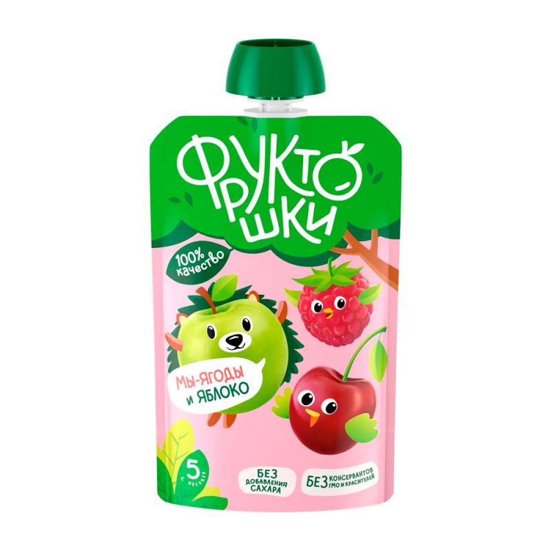 Пюре Фрутоняня Фруктошки из яблок, черешни, малины и красной смородины 5м+ 90гр