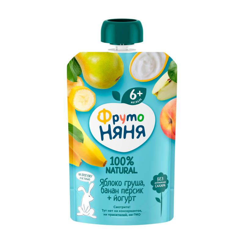 Пюре ФрутоНяня из яблок бананов груш персиков с йогуртом 6м+ 90 гр